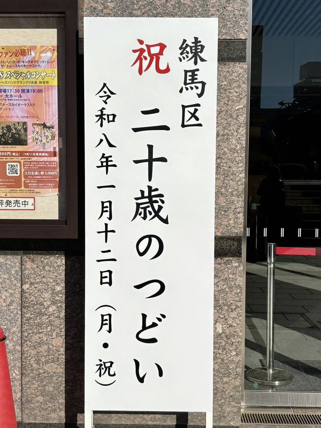 「練馬区二十歳の集い」の式典に出席いたしました。節目の歳をむかえられた皆さま、誠におめでとうございます。
