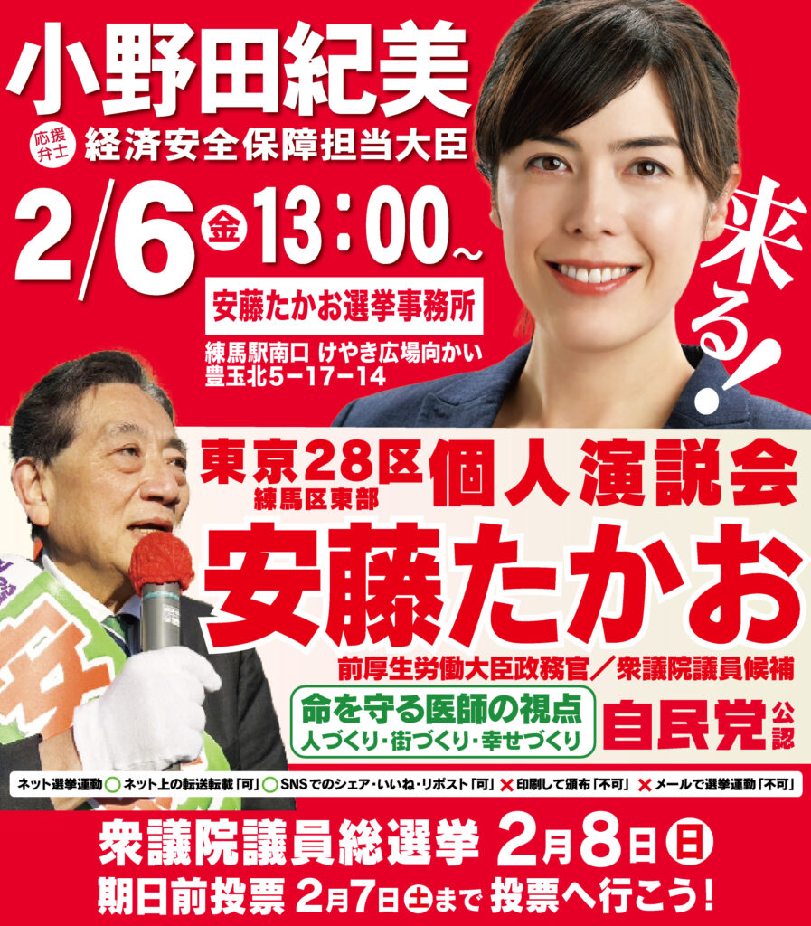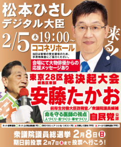 明日2月6日(金)13:00~(安藤たかお選挙事務所)