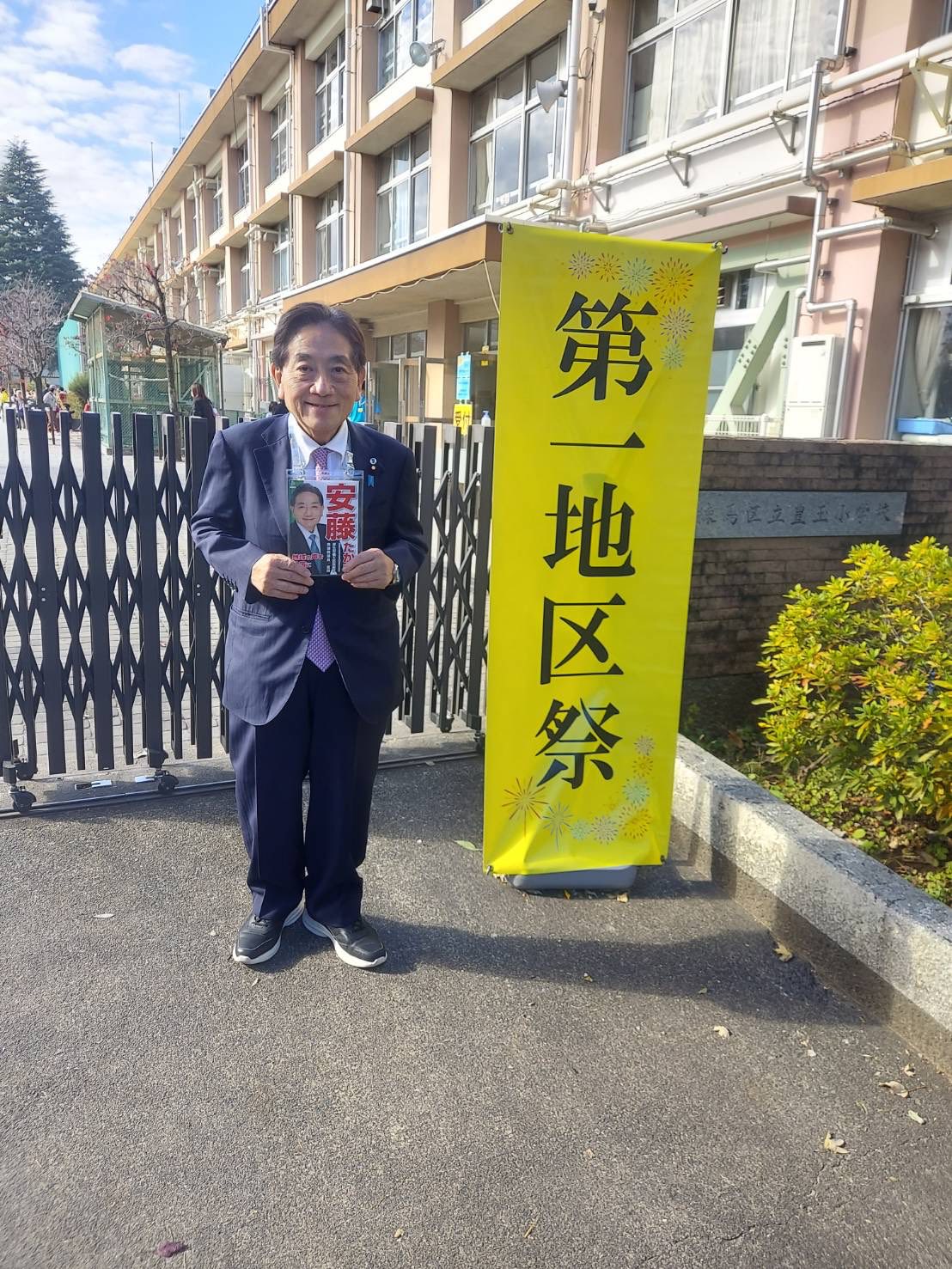 続いて、豊玉小学校の第一地区祭では、地域の活気と子どもたちの笑顔に元気をいただき、
