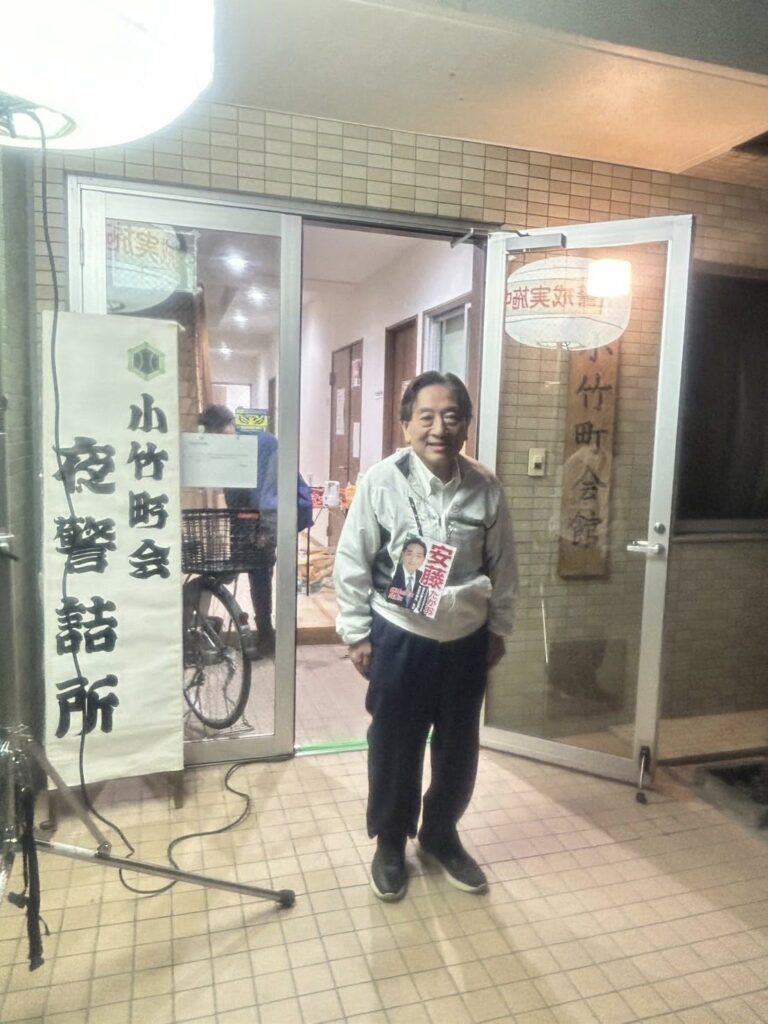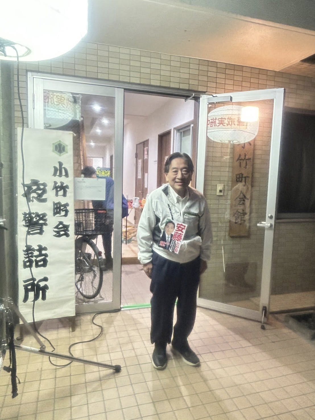 連日、夜警の現場を周りながら、ご挨拶をさせていただいています。