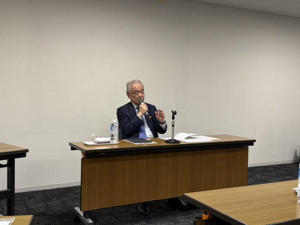 東京都医師会 会長の尾﨑治夫先生を講師にお招きし、「日本の医療・東京の医療」の演題でご講演をいただきました。尾﨑会長が副会長の頃、医療廃棄物の担当であったとのお話から始まり、国際的な状況も踏まえた日本の医療政策、東京の医療の特殊性など、多岐にわたるお話をいただきました。