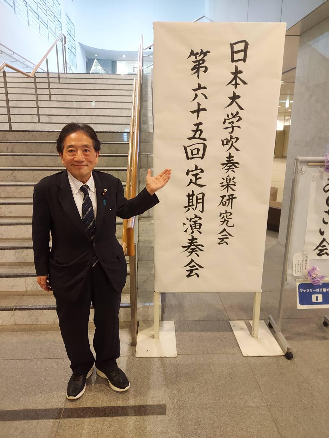 私の母校でもある日本大学の吹奏楽研究会の演奏会にお邪魔しました。 2025年9月22日 最終更新日時 : 2025年9月23日 andotakao 本日は、地元練馬区の元区議で私の政治家としての先輩でもある笠原幸蔵先生にお誘いいただき、私の母校でもある日本大学の吹奏楽研究会の演奏会にお邪魔しました。 母校の後輩達の素晴らしい演奏の数々を拝聴しました。