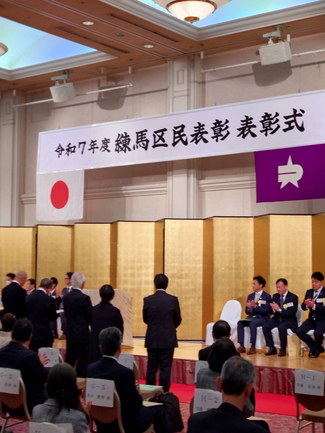 本日は、練馬区民表彰式に参列させていただきました。区政の振興や地域社会の育成、文化・教育・福祉・経済活動など、さまざまな分野においてご尽力をいただいた受賞される方々を心より讃え、敬意を表したいと思います。