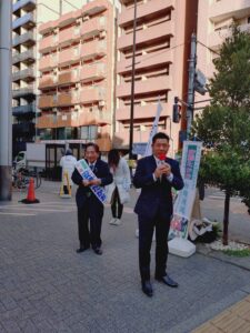 ご通勤の皆様には大きいマイクで失礼しておりますが、医療・介護・年金・福祉など、皆様の暮らしを少しでも豊かにしていけるように頑張ってまいります。何卒ご支援、ご声援よろしくお願いいたします!